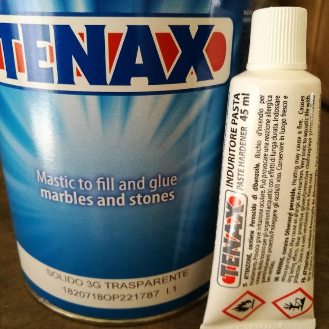 Tenax marble glue 1l with hardener 45ml. All bathroom kitchen chemical products cleaning products construction products. Tenax solid marble glue is a adhesive designed for gluing and filling all types of stones and marble products. Epoxy resins and mastics epoxy resins and mastics are used to glue marble granite.